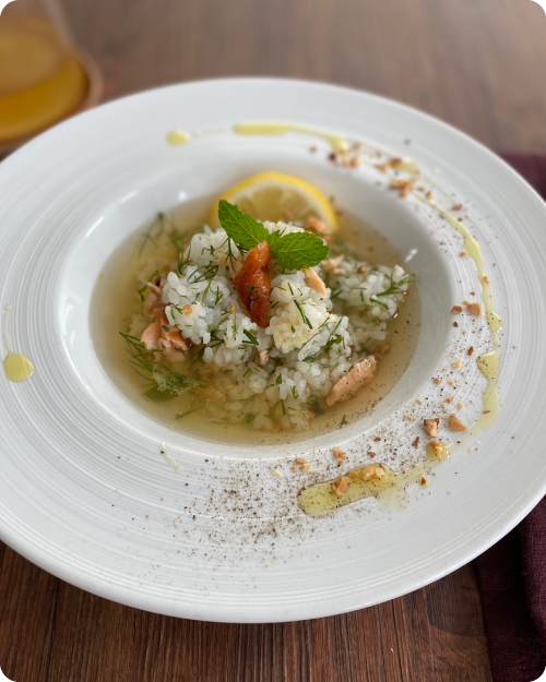 | 胃腸を休めて快眠。 今年も健康と美肌作りを。 ~サーモンとハーブのリゾット風~ |